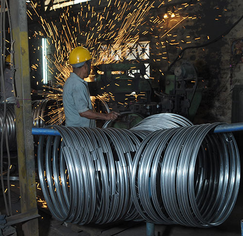 There are seven sheds out of which three are for telescopic steel poles, telecom towers, steel bridges and other steel items, three are for manufacturing distribution line hardware and pole fittings and one shed for stores.